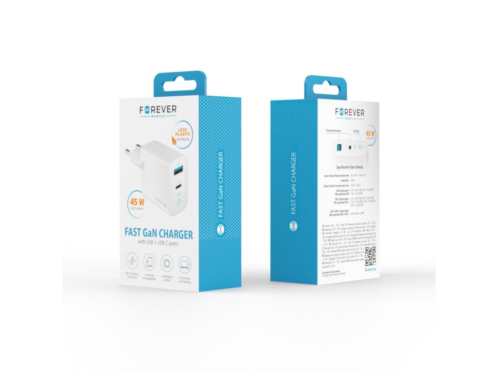 Adaptor încărcător GaN PD QC 1x USB-C, 1x USB, 45W, alb [GSM171396]