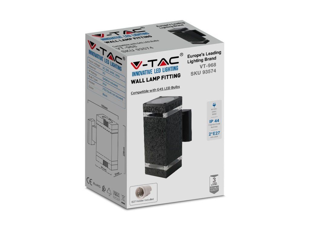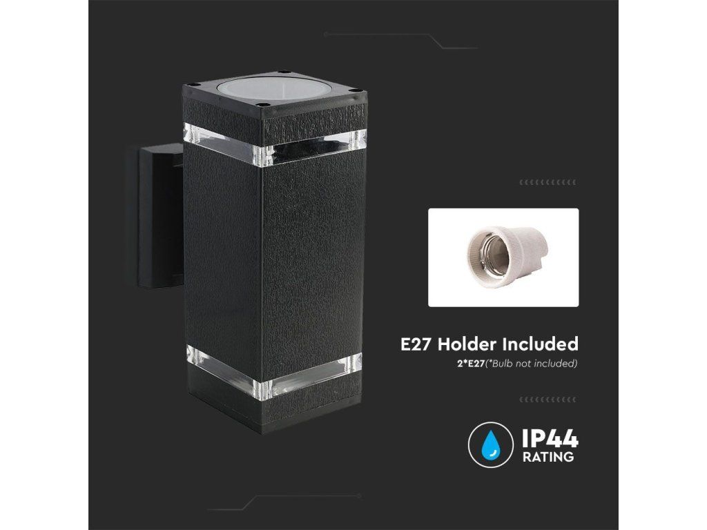 Apărare pentru perete 2xE27, IP44, neagră, pătrată/2-PACK!!