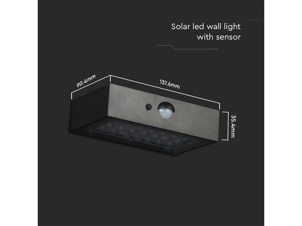 Lampă solară LED cu senzor 3W, 350lm, 1200mAh, 4000K+3000K, IP65, negre/2-PACK!