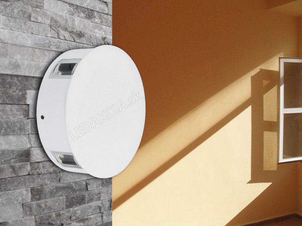 Aplica de perete LED de 4W este potrivită ca iluminat exterior decorativ. Există o variantă alb cald 3000K și o variantă Alb Natural 4000K. Dimensiune: Ø150 x 50 mm.