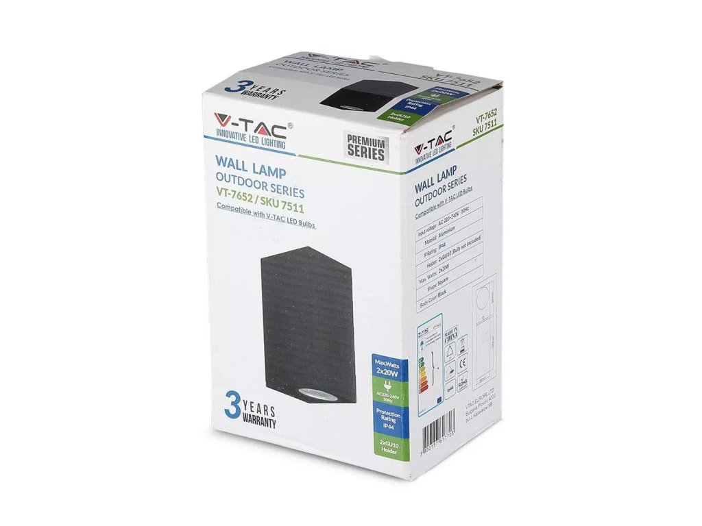 Aplic Led Gu10 Lucios, Patrata, Neagra, Dubla