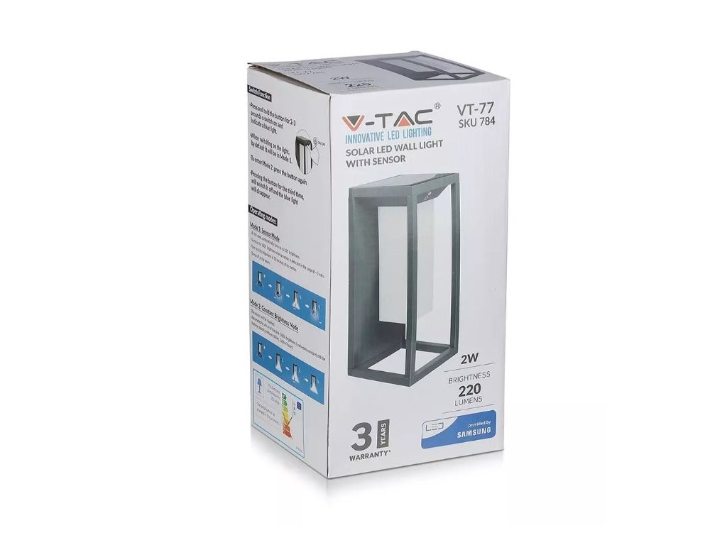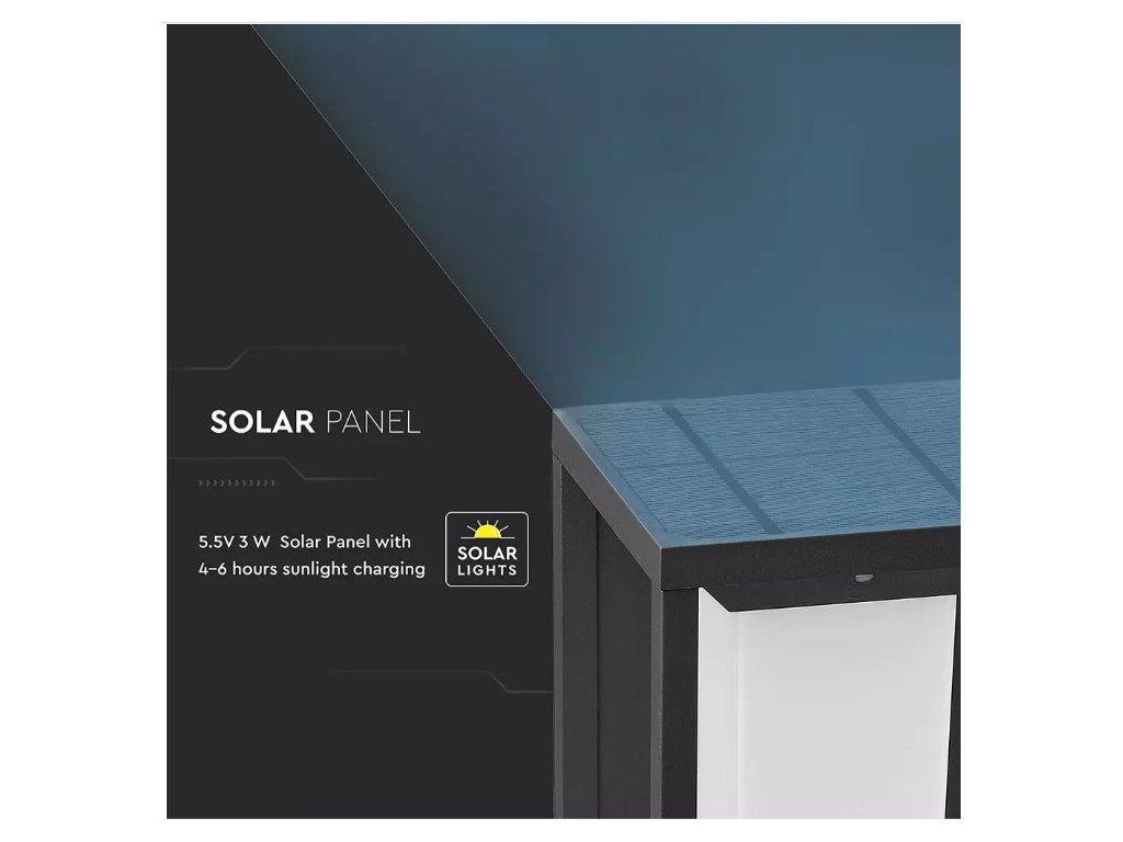 Aplic solar cu LED, cip Samsung, gri, 2W, 220lm, 3000K, IP65