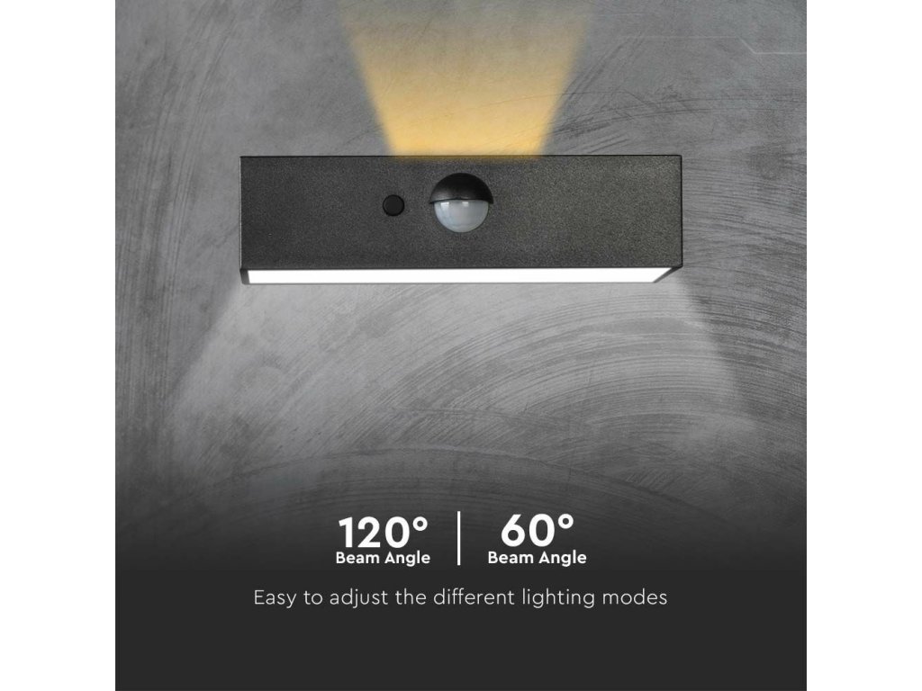 Lampă solară LED cu senzor 3W, 350lm, 1200mAh, 4000K+3000K, IP65, negru, IP65
