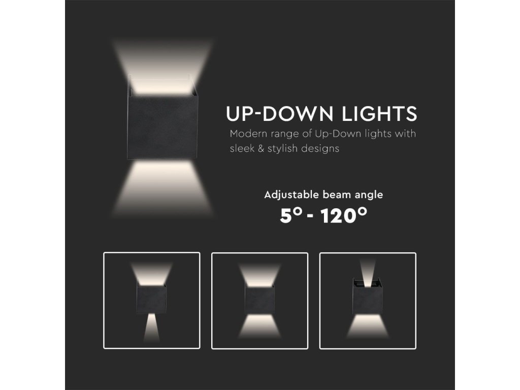 LED lampă de perete 11W, 1360lm, cuadrată, IP65, neagră