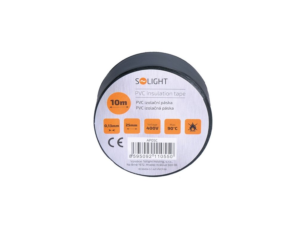 Bandă izolatoare Solight, 25 mm x 0,13 mm x 10 m, neagră [AP05C]