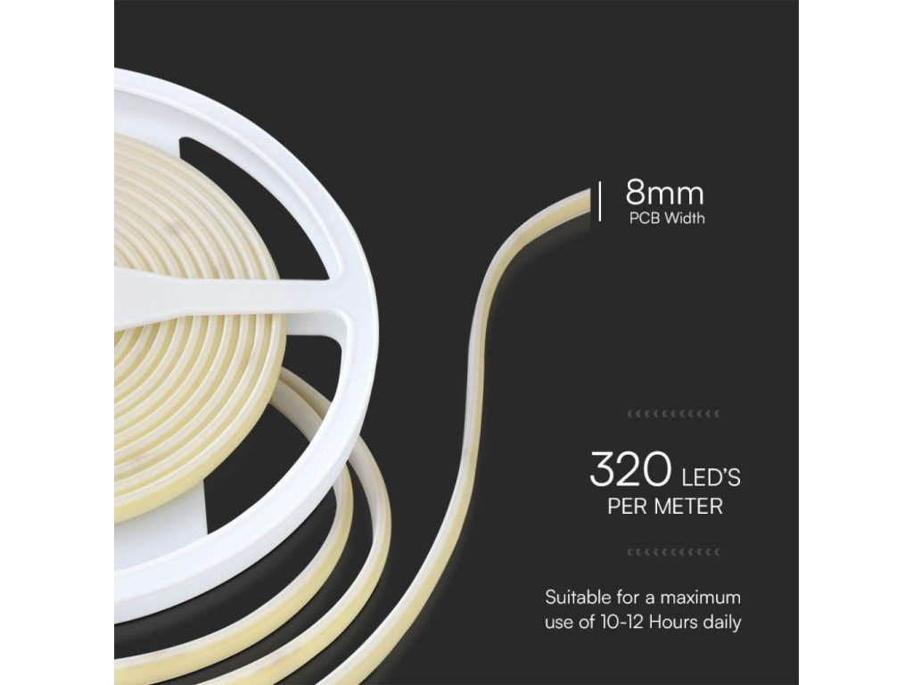 Banda LED COB pentru exterior 9W/m, 840lm/m, 24V, 8mm, IP67, ambalare 5m