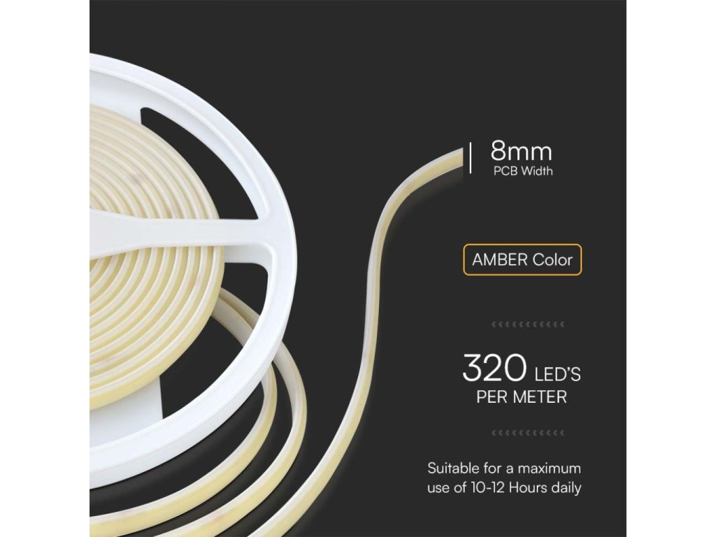 Banda LED COB pentru exterior 9W/m, 840lm/m, 24V, 8mm, IP67, portocalie, ambalaj 5m