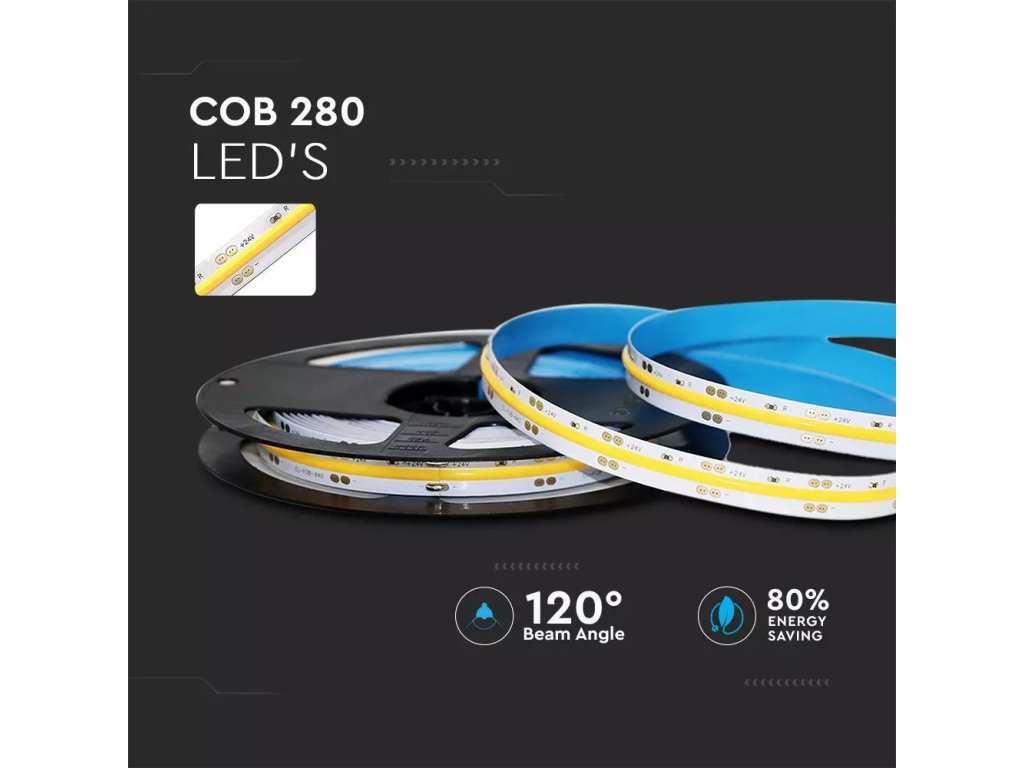 Banda LED COB pentru interior 10W/m, 800lm/m, 24V, 8mm, IP20