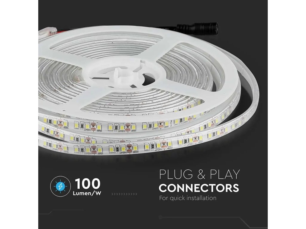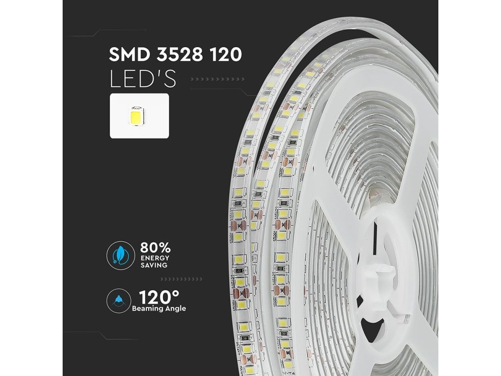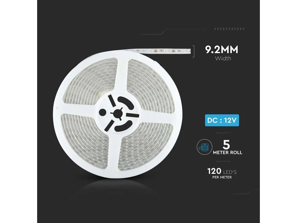 Bandă LED de exterior 12V, 8W/m, 800lm/m, 120 LED-uri/m, SMD 3528, IP65, pachet 5m