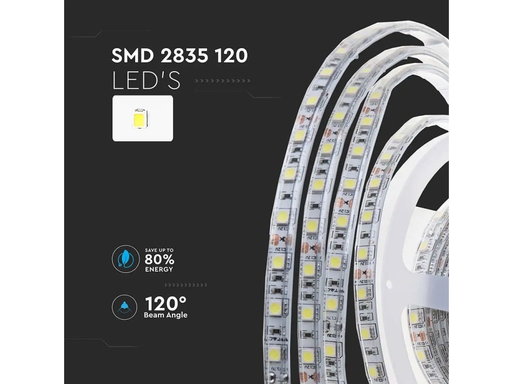 Bandă LED de exterior 7,5W/m, 750lm/m, 120LED/m, SMD 2835, 24V, IP65, pachet 10m