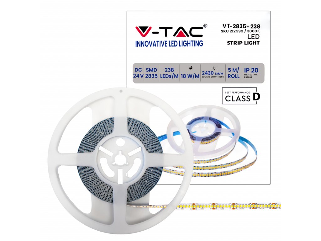 Bandă LED de interior 18W/m, 2430lm/m, 238LED/m, SMD2835, 24V, IP20