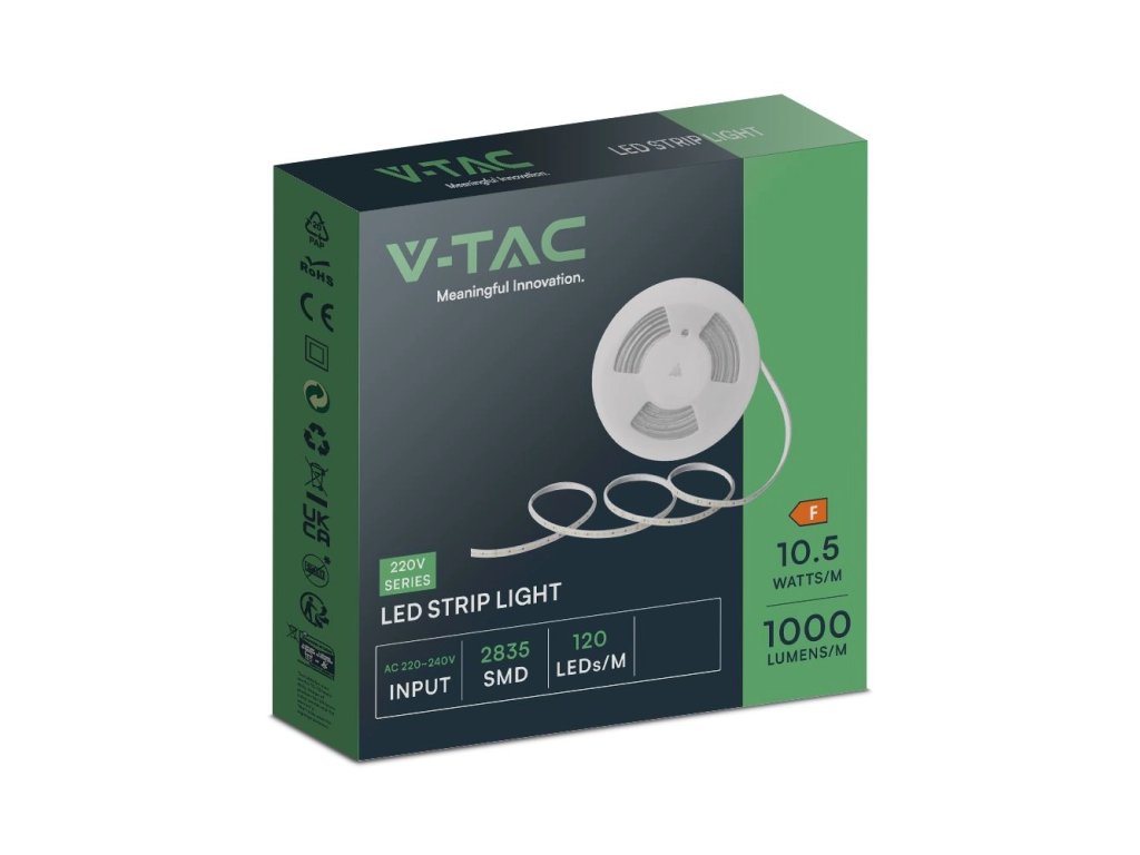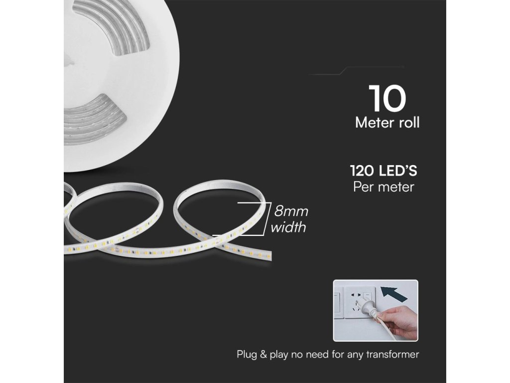 Banda LED impermeabilă 230V, 10,5W/m, 1000lm/m, IP65, 10m