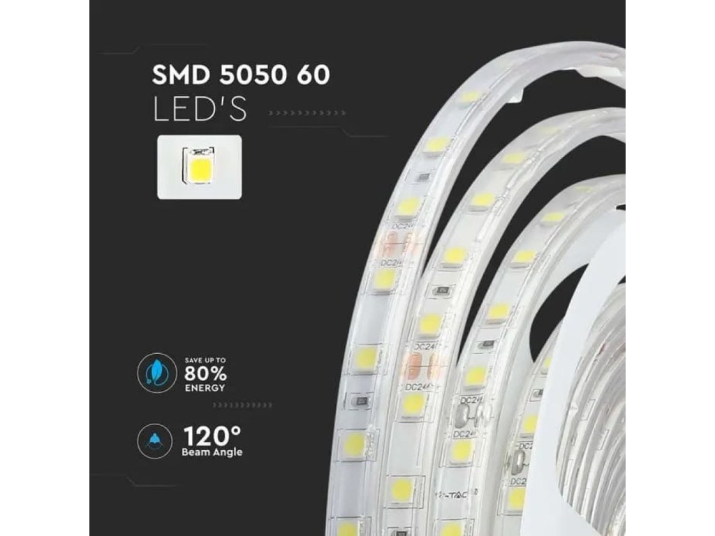 Bandă LED pentru exterior 10W/m, 830lm/m, 24V, 60LED/m, IP65, ambalaj 5m
