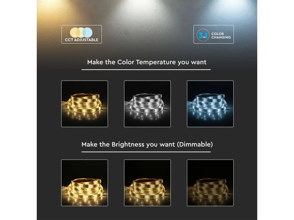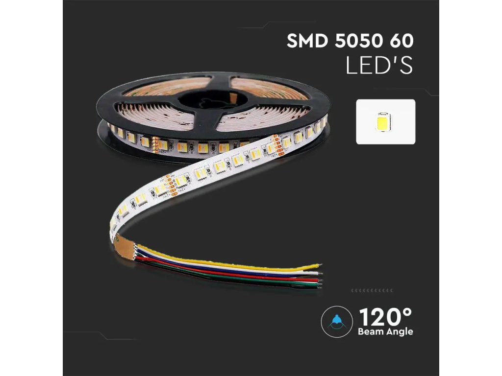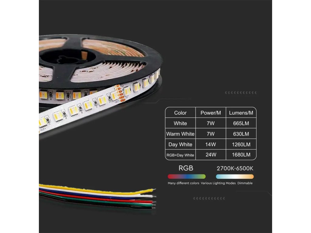 Bandă LED pentru exterior RGB+CCT, 24V, 24W/m, 1630lm/m, IP65