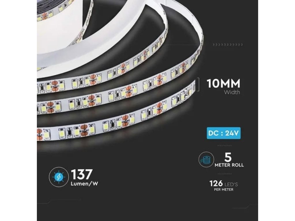 Banda LED pentru interior 8W/m, 126LED/m, IP20, 1100lm/m, 24V