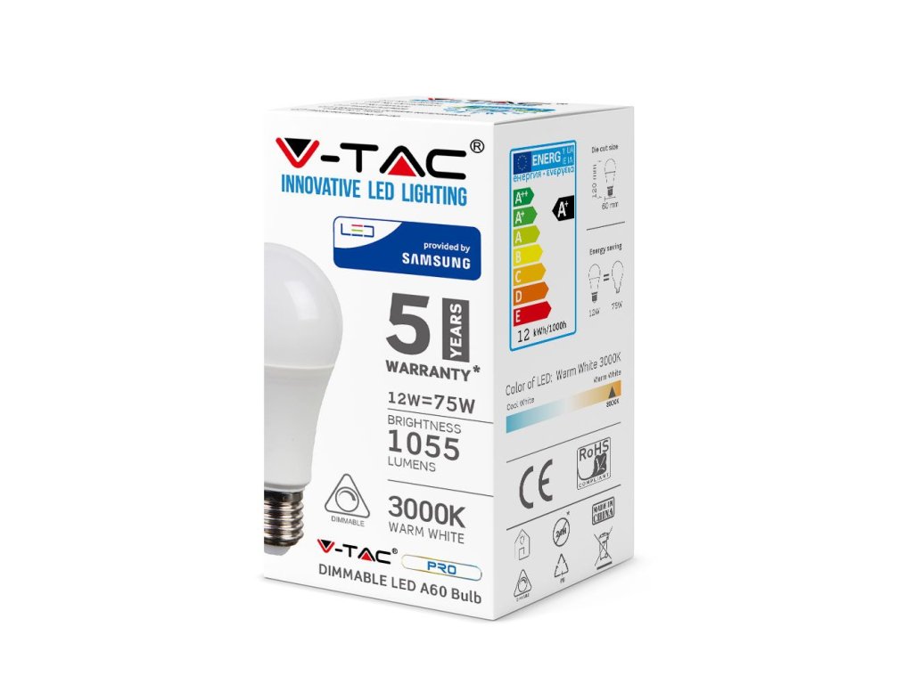 Bec LED E27, 12W (1055lm), A60, reglabil, cip Samsung