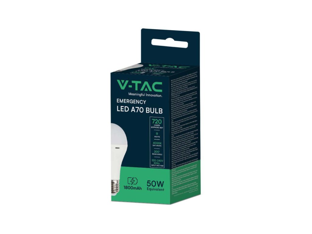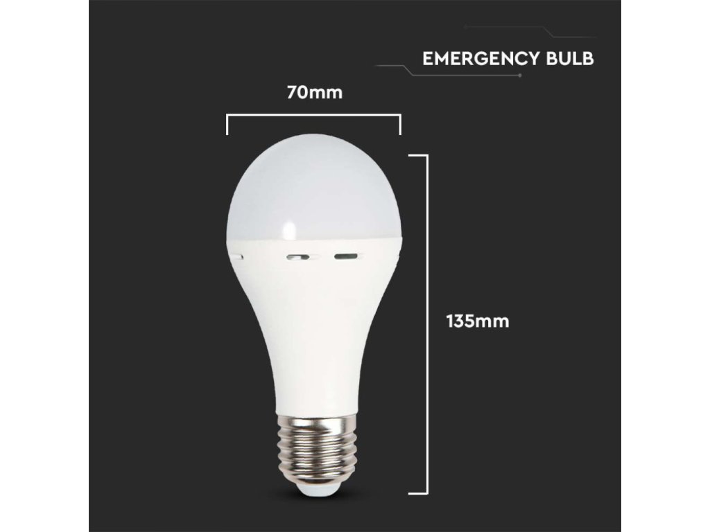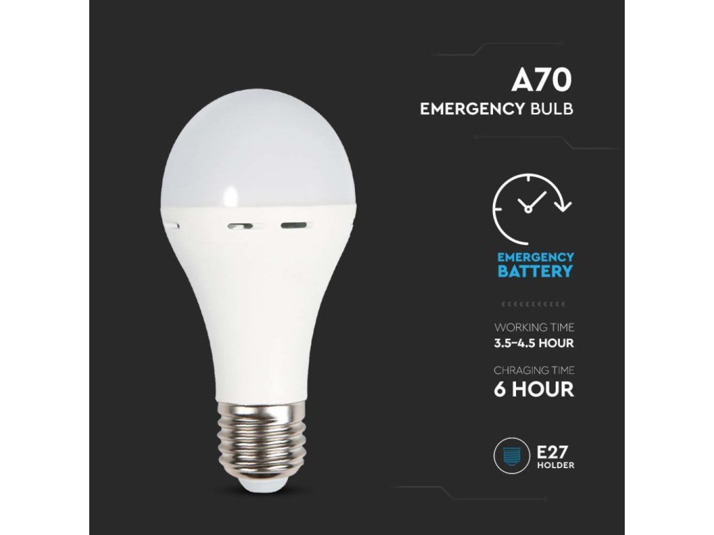 Bec LED E27 cu baterie de urgență 9W (durată de viață 3,5-4,5 ore), 720lm, A70, 4000K