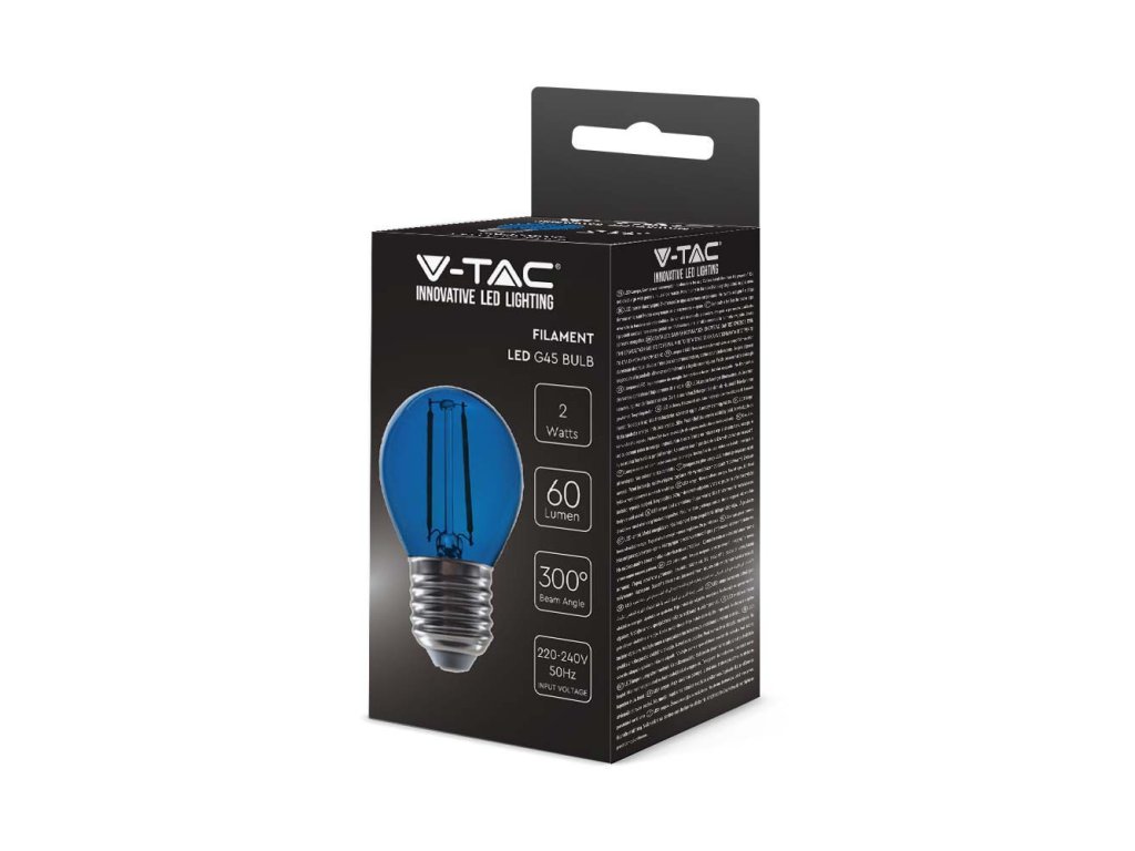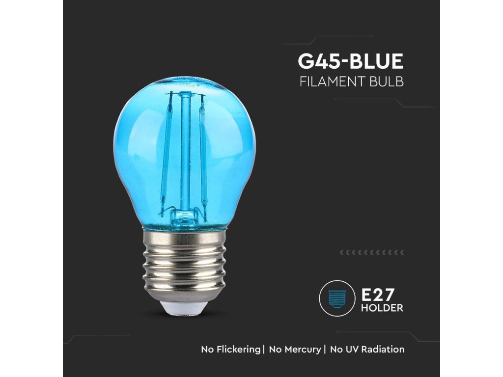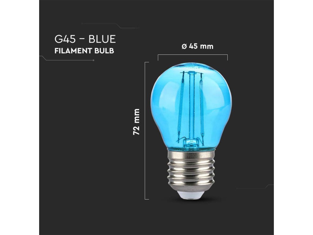 Bec LED E27 cu filament 2W, 60lm, G45, albastru