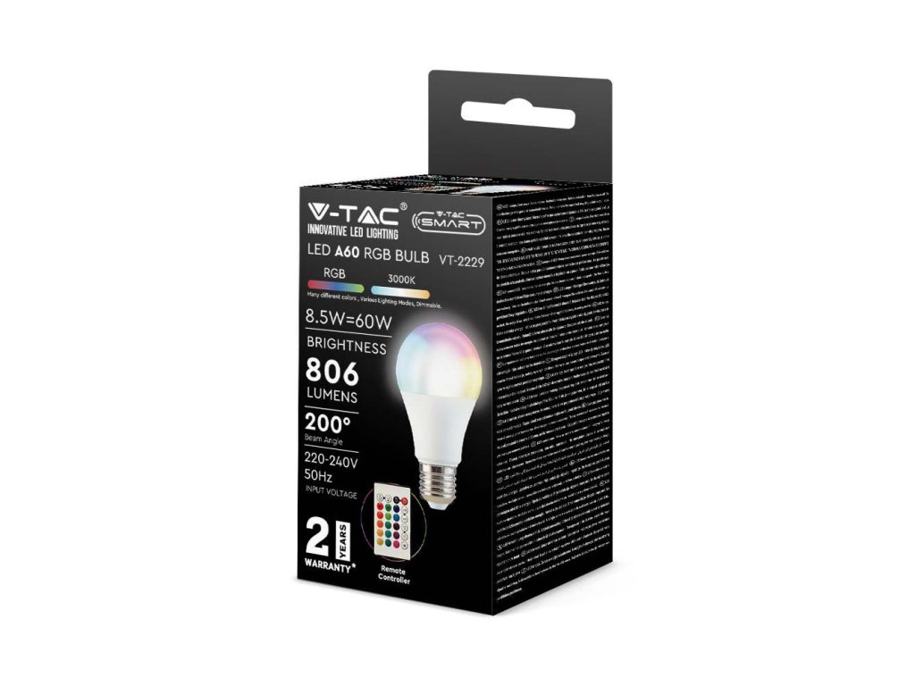 Bec LED E27 RGB+3000K 8.5W RF control A60