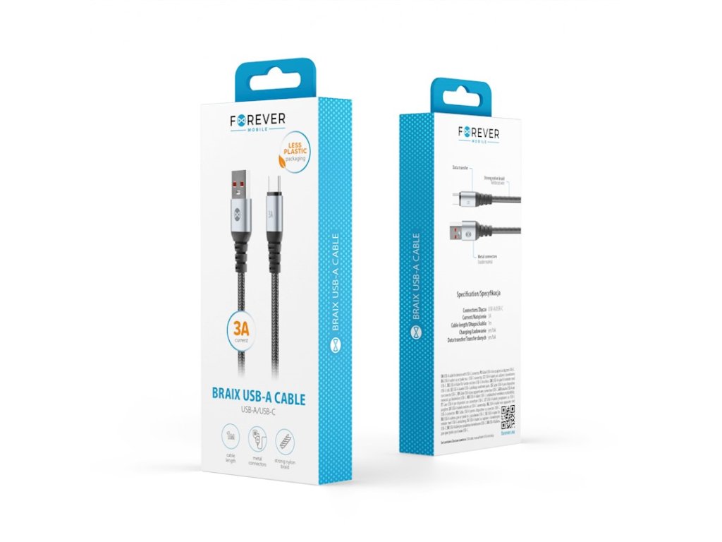 Cablu Braix USB-A - USB-C 1m, 3A, negru [GSM195613]