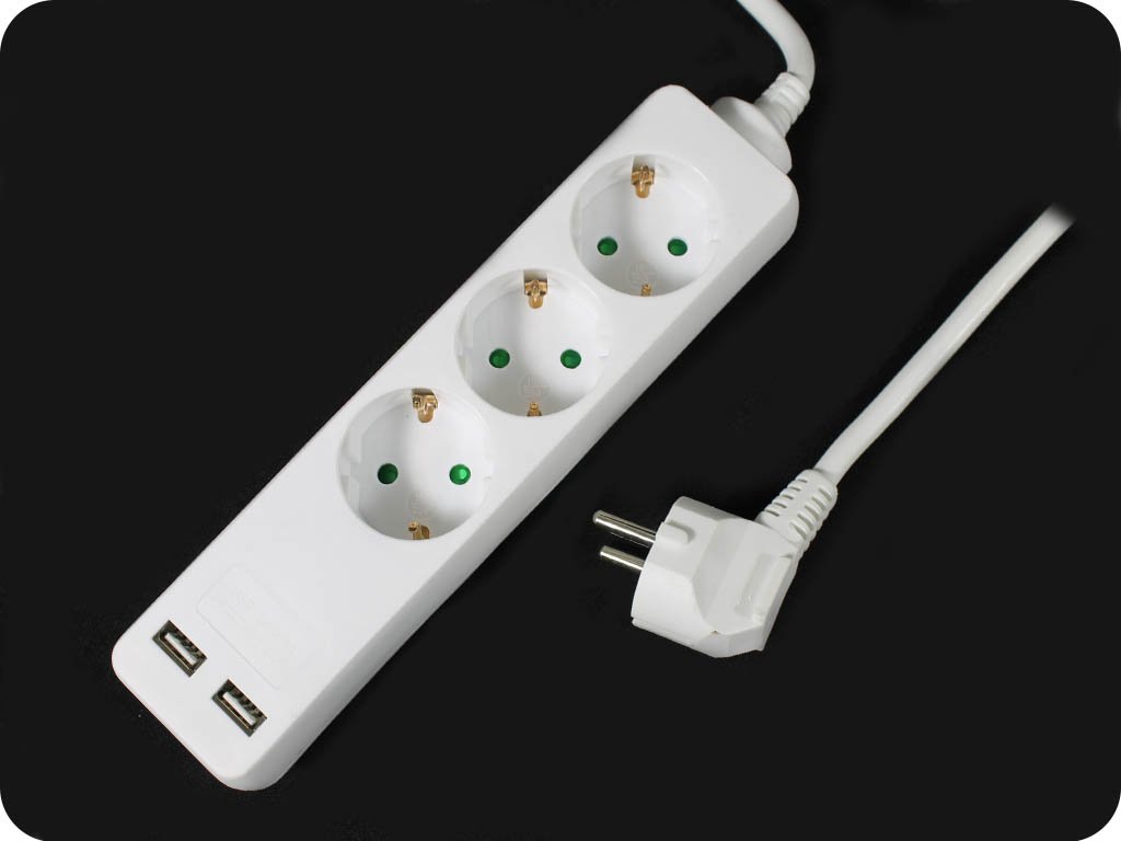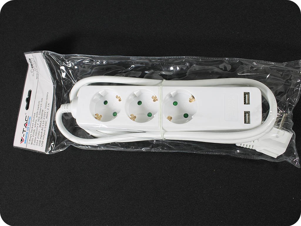 Cablu prelungitor, 3 prize + 2xUSB, 1.5m, 16A, 3G1.5mm2, alb