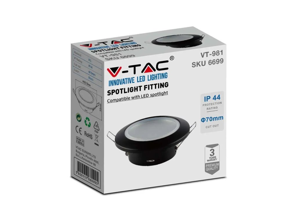 Cadru pentru bec spot GU10, rotund, IP44, negru/2-PACK!