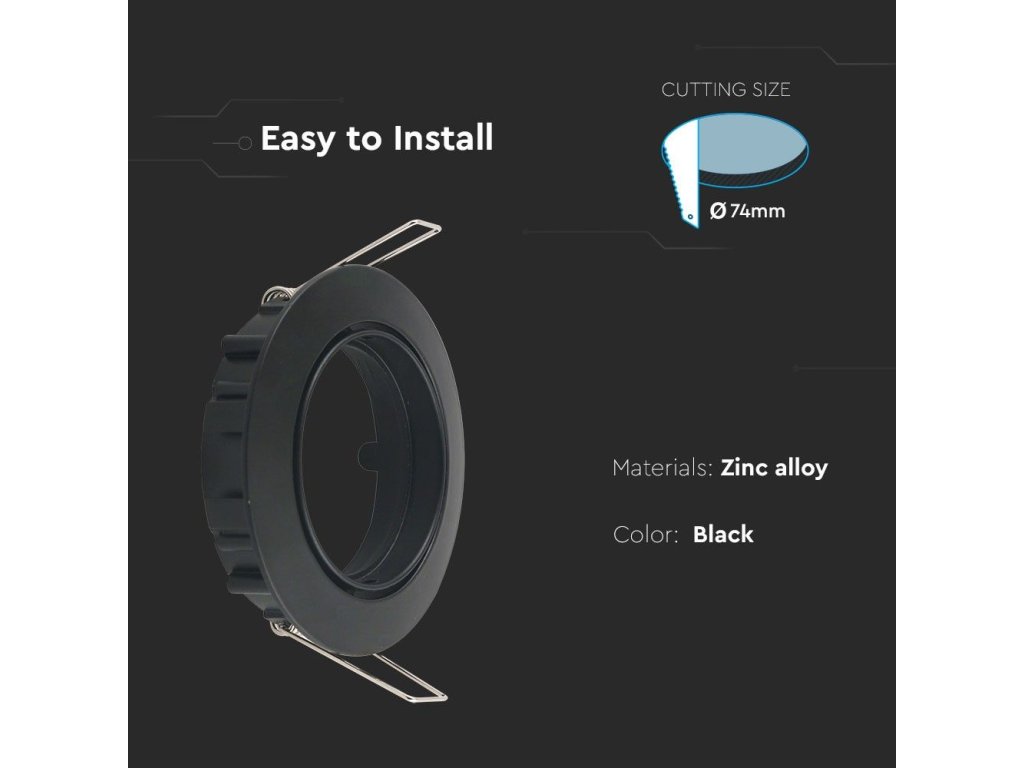 Cadru pentru bec spot GU10/GU5.3, circular, mobil, negru