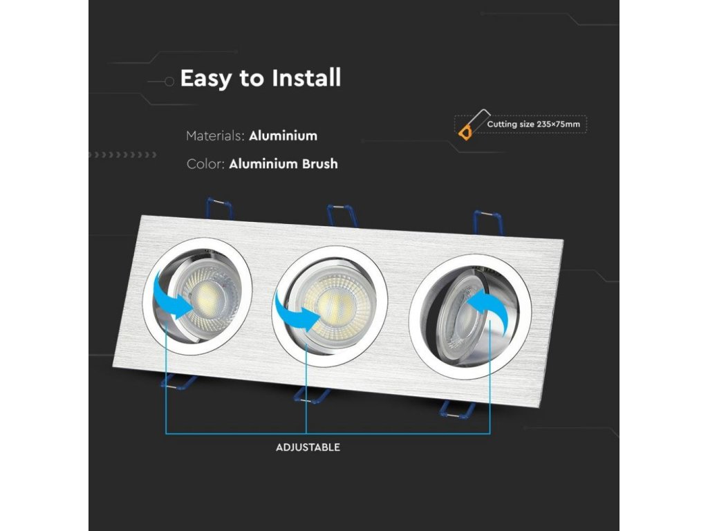 Cadru Triplu Pentru Becuri Spot Gu10, Rotativ, Patrat