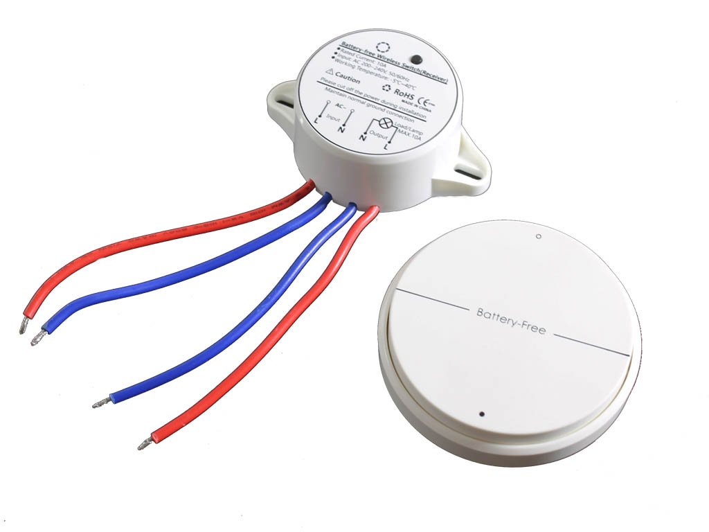 Comutatorul wireless nu are nevoie de alimentare sau baterii. Se bazează pe tehnologia frecvenței radio. Comutatorul trimite un semnal pentru a controla receptorul. Raza de acțiune a comutatorului este de peste 30 de metri.