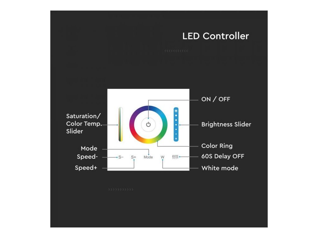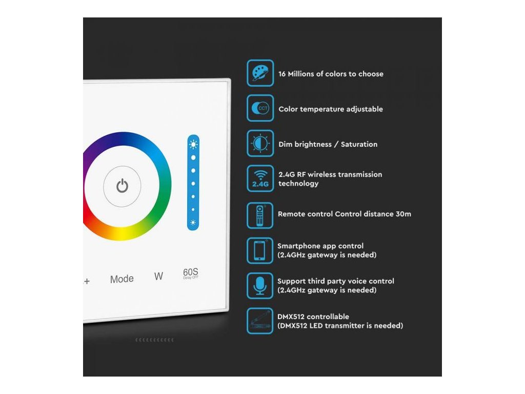 Controler de perete pentru RGB / RGBW / RGB + CCT, max10A, 12-24V