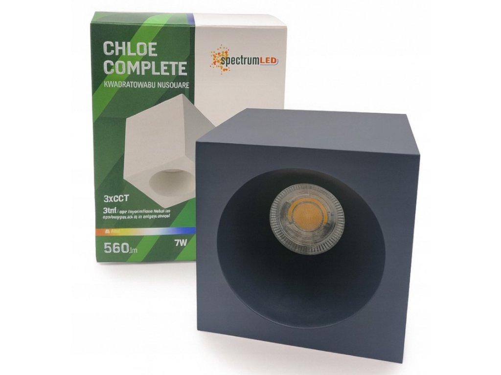 Corp de iluminat LED cu montare aparentă CHLOE 7W, 560lm, CCT, pătrat, negru [SLI043035CCT_PW]