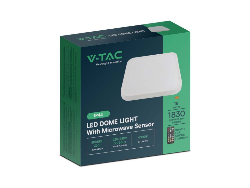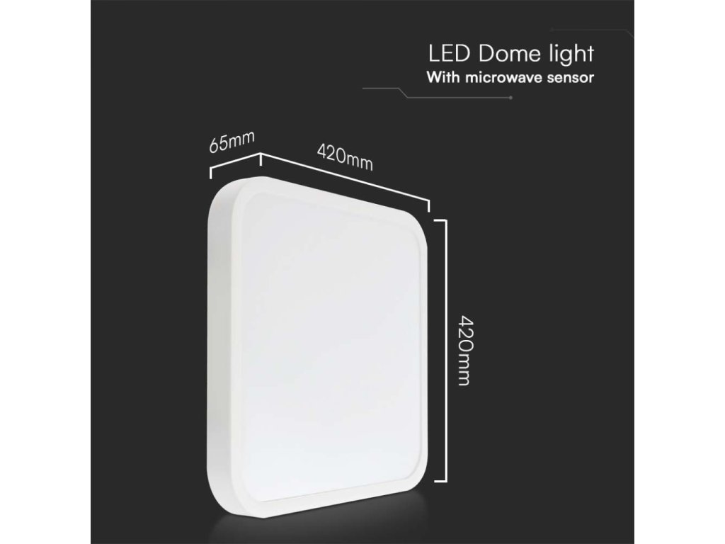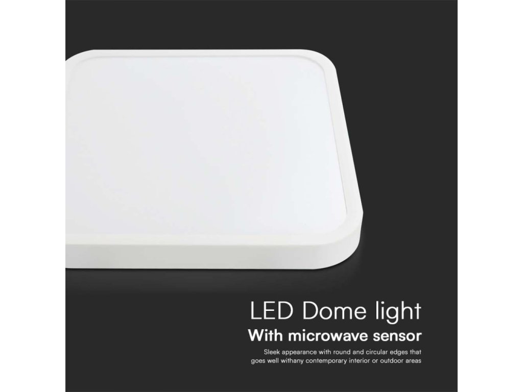 Corp LED cu senzor de microunde și lumină 36W, 3820lm, IP44, 4000K, pătrat, cadru alb