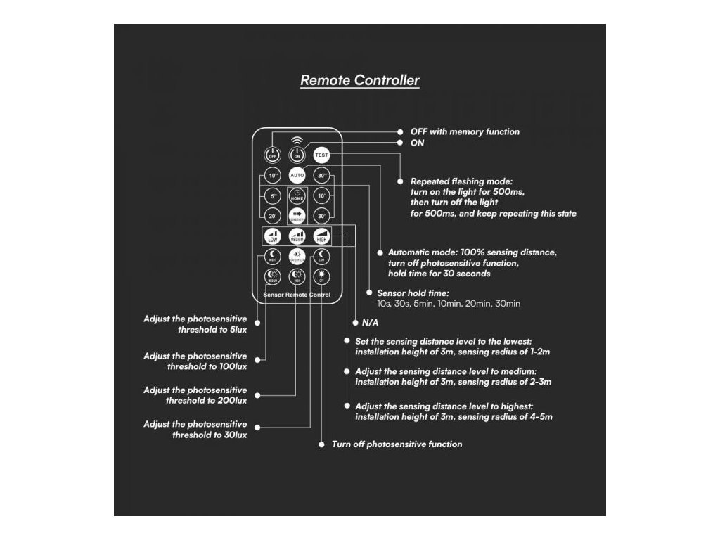 - Setul include telecomandă ce permite programarea precisă a senzorului de mișcare