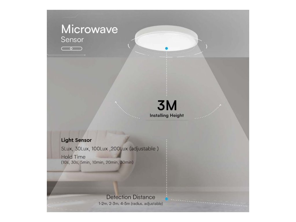 Corp LED cu senzor de mișcare și de lumină 18W, 1830LM, rotund, cadru alb/2-PACK!