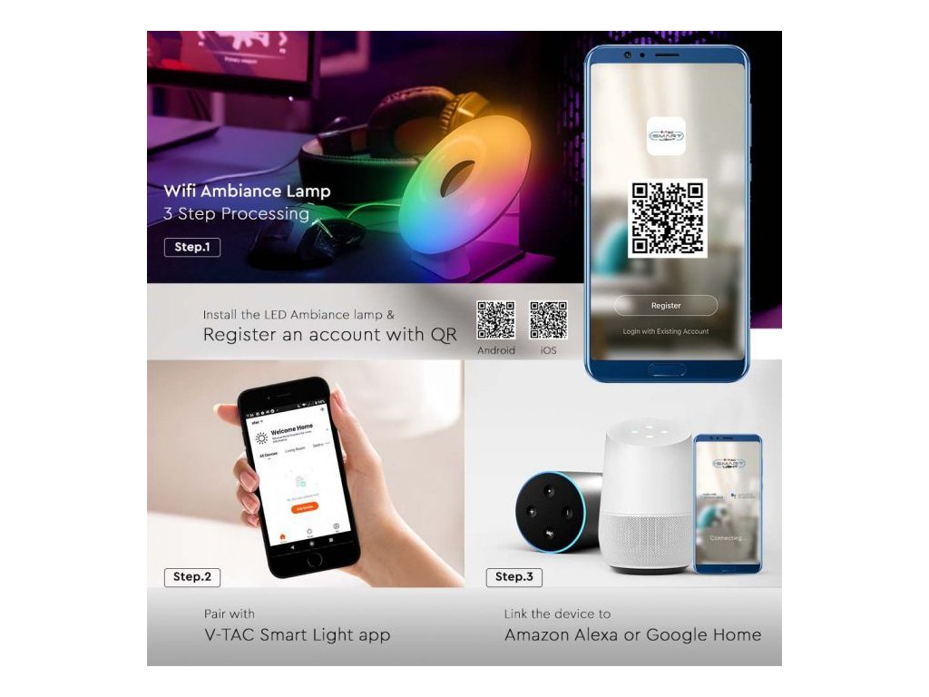 Iluminare ambientală LED 5W, 550lm, WiFi, compatibil cu Amazon Alexa și Google Home, RGB+WW+CW