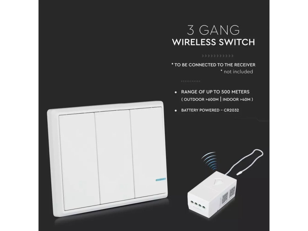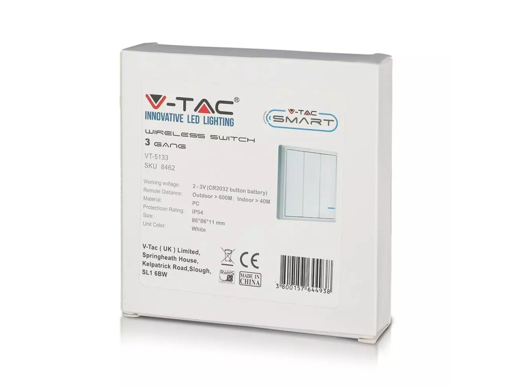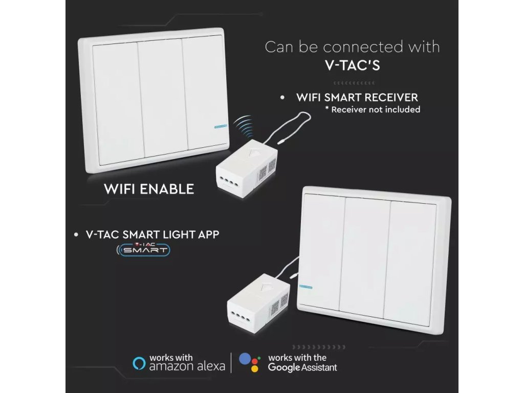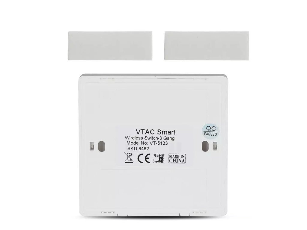 Întrerupător de perete pentru comutator V-TAC Smart/RF, cu 3 butoane [pentru 8458, 8459]