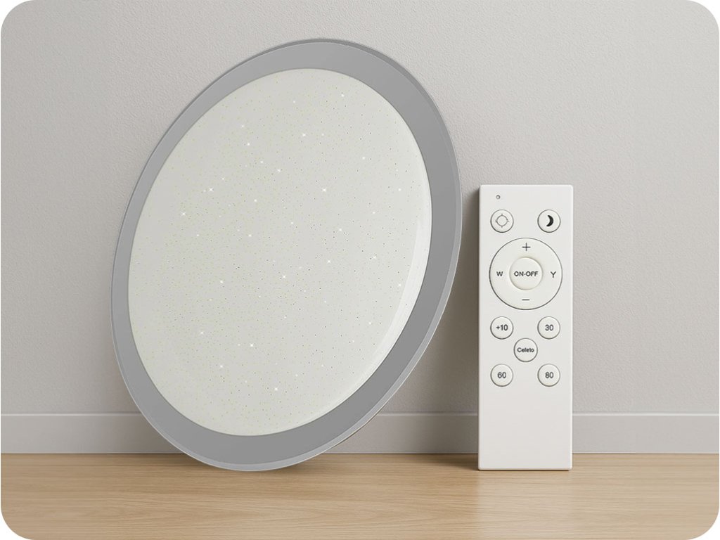 - Telecomandă inclusă - controlează culoarea luminii de la alb cald la alb rece, modul nocturn, temporizator și reglare intensitate