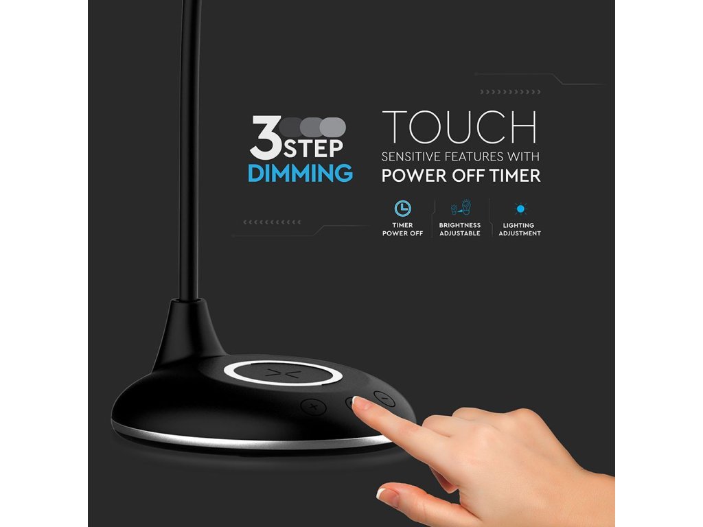 Lampa de masa cu LED 4W, 400lm, reglabila, CCT+, incarcare wireless, neagra