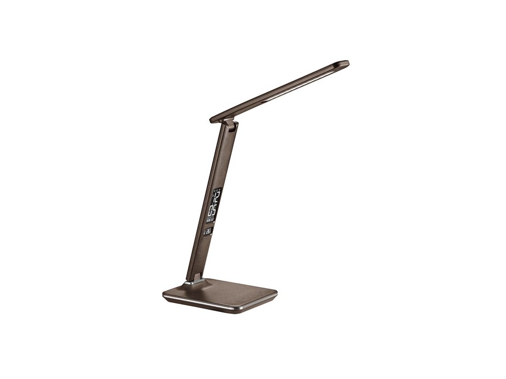 Lampa de masa LED cu display, 9W, piele, maro, temperatura luminii la alegere