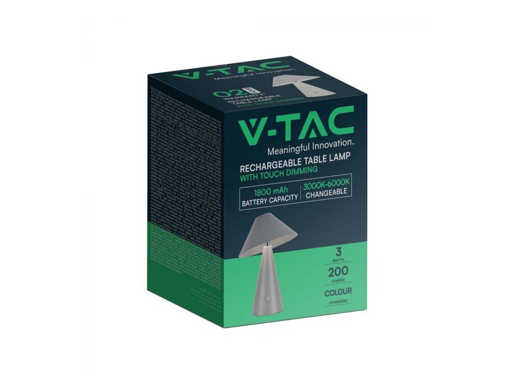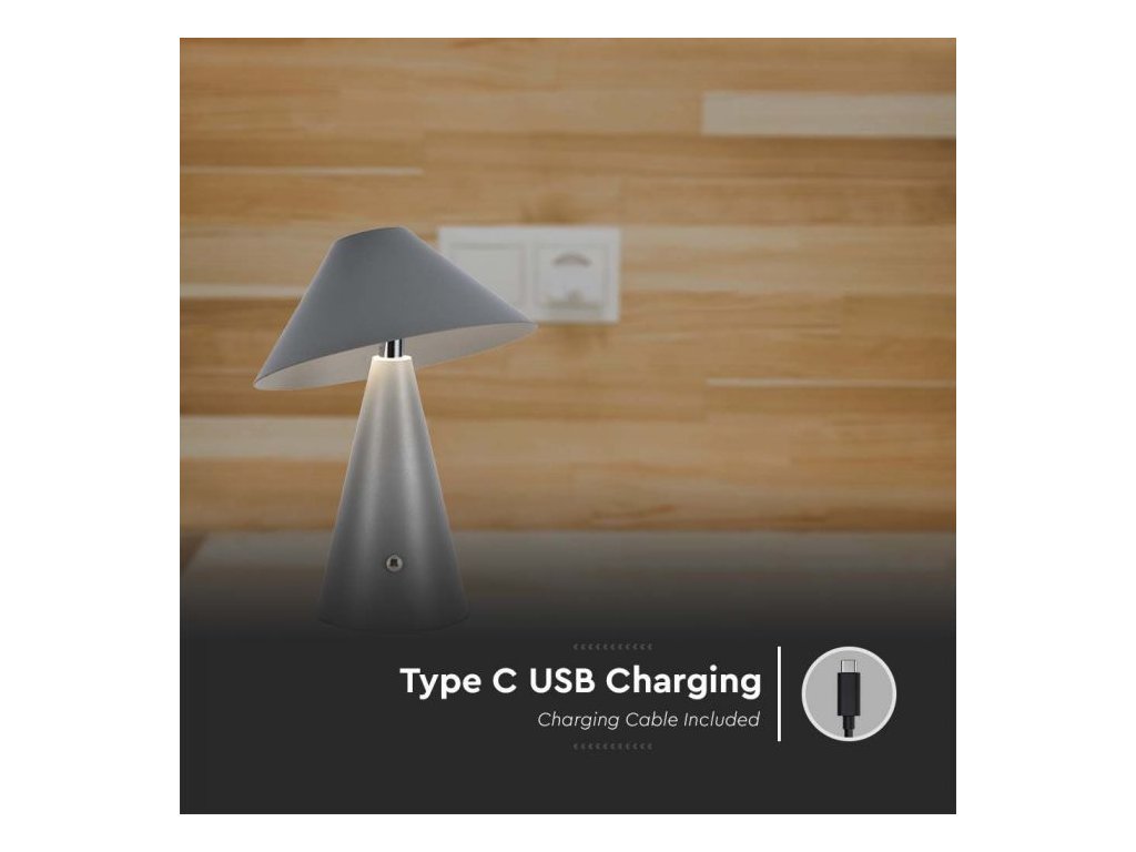 Lampă de masă LED reîncărcabilă, gri, 3W, 200lm, IP20, 3 în 1