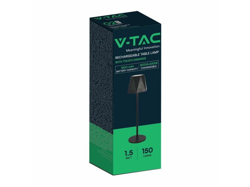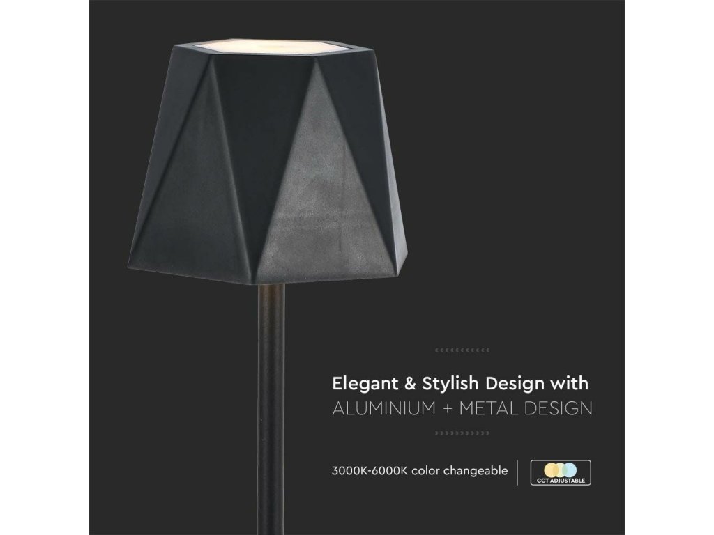 Lampă de masă LED reîncărcabilă 1,5W, 150lm, reglabilă, IP20, neagră, CCT