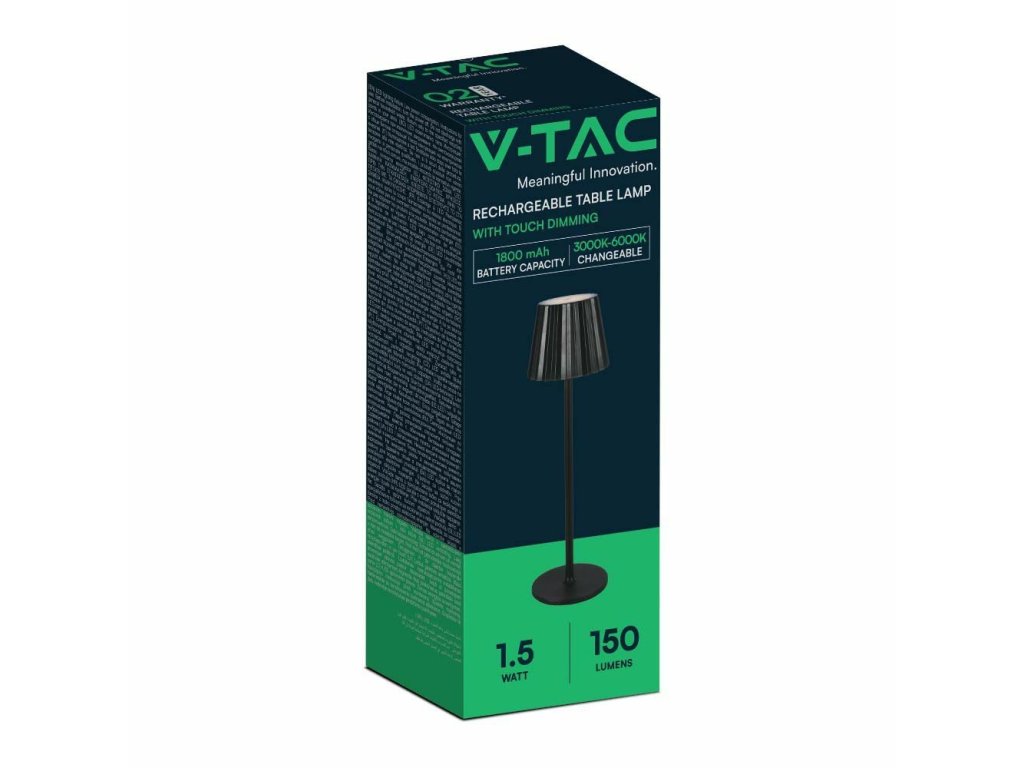 Lampă de masă LED reîncărcabilă 1,5W, 150lm, reglabilă, IP20, neagră, CCT