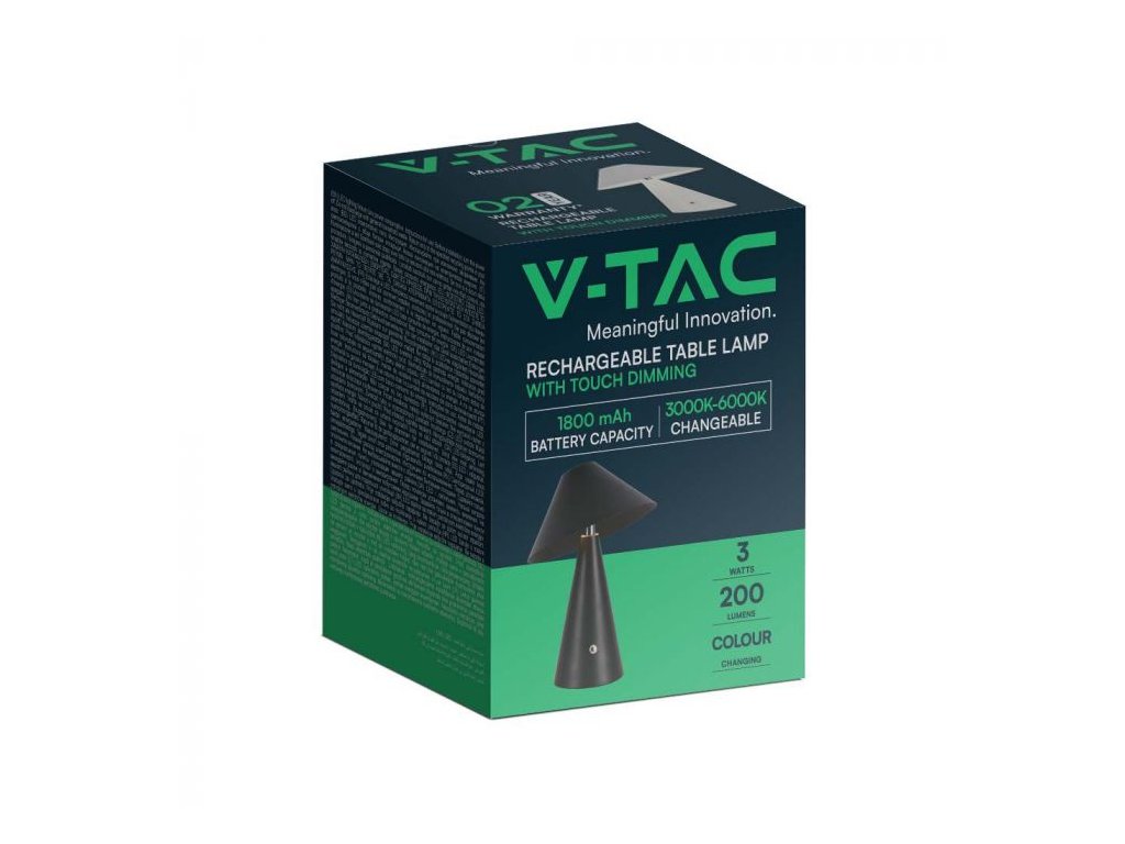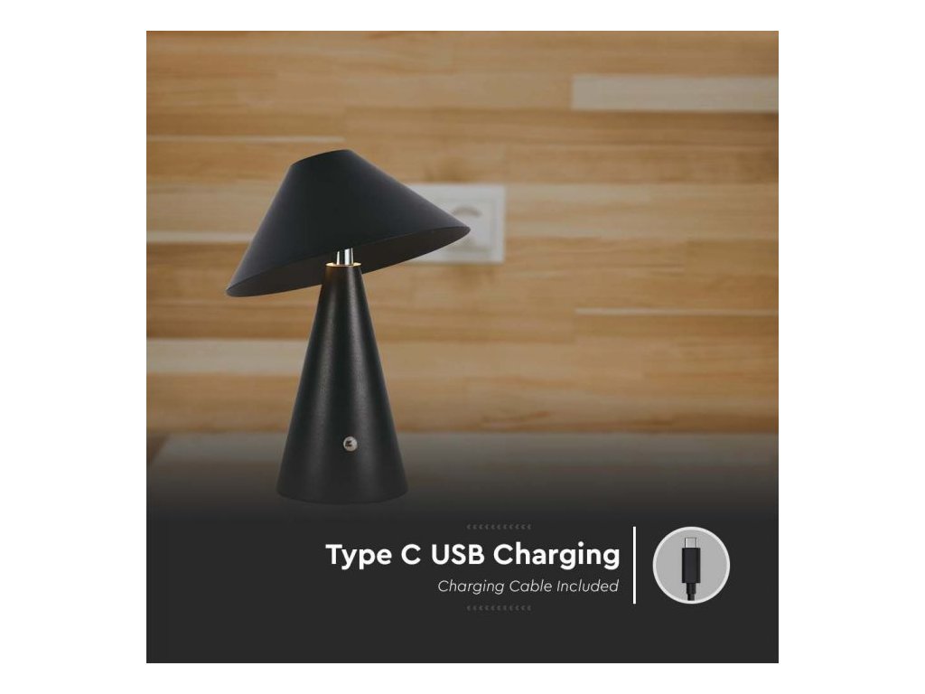 Lampă de masă LED reîncărcabilă neagră, 3W, 200lm, IP20, 3in1