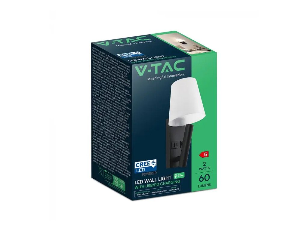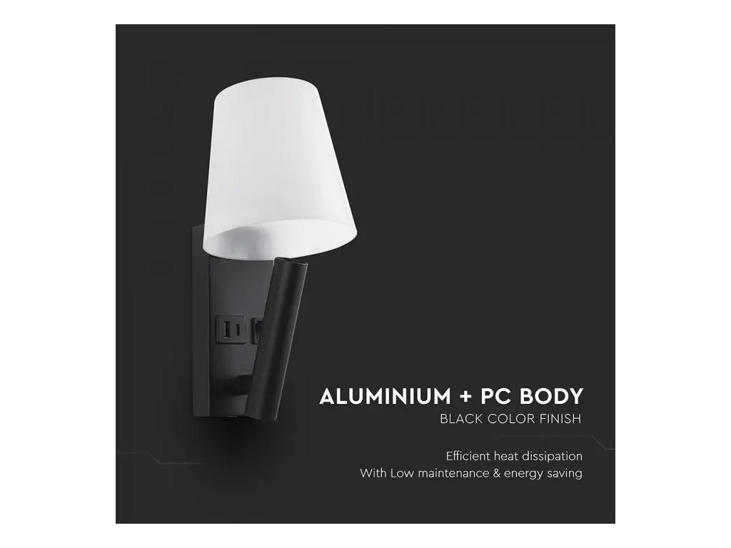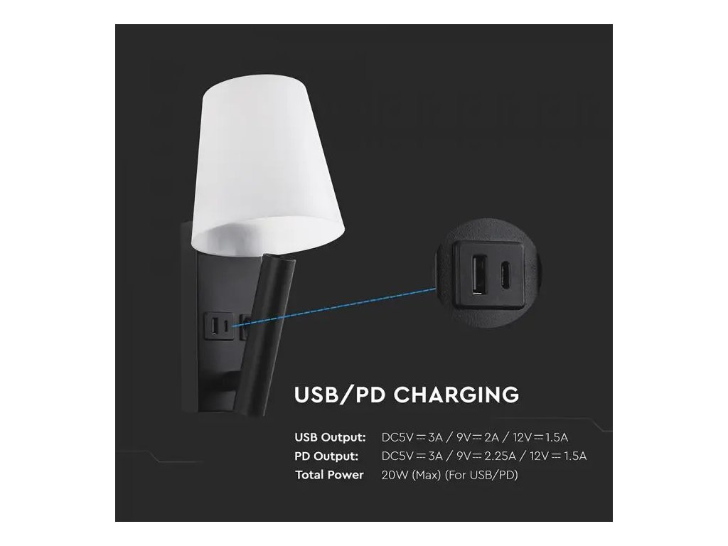 Lampă de noptieră LED 2W, 60lm, USB/PD, cip CREE, neagră