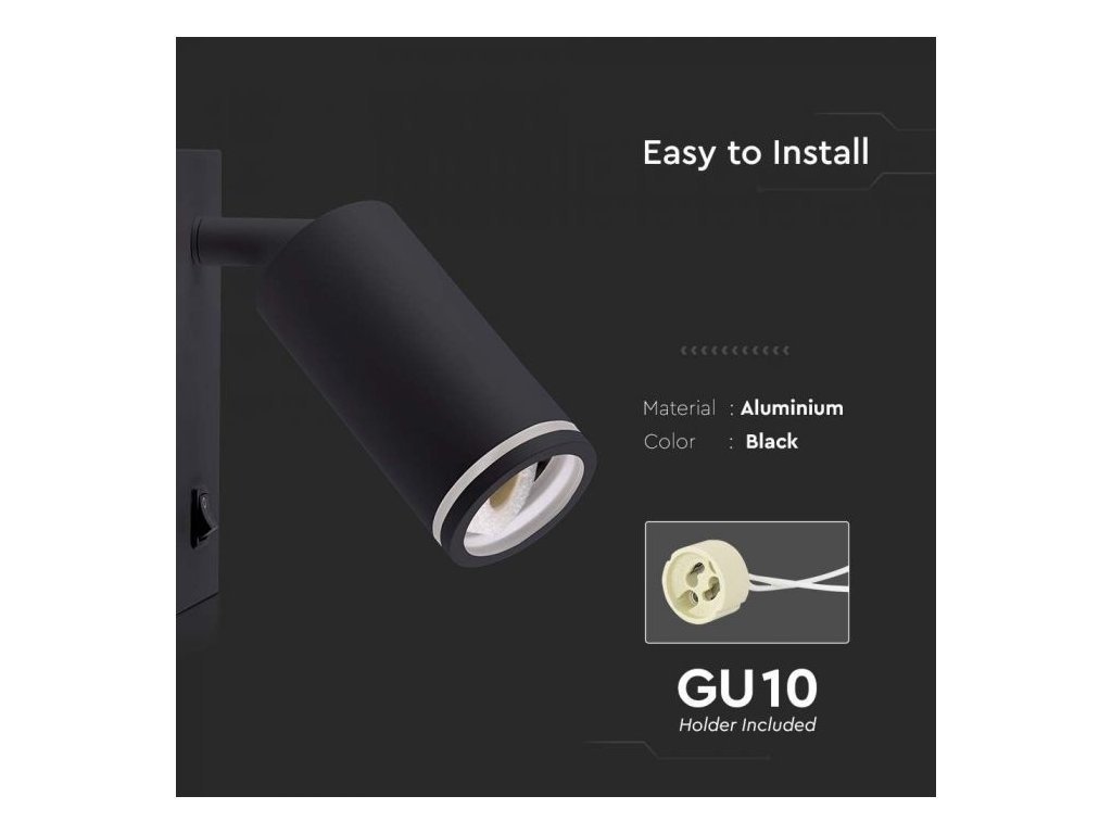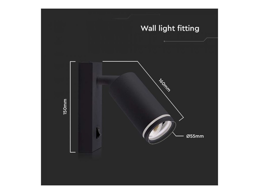 Lampa de perete cu intrerupator pentru bec GU10 230V IP20 negru