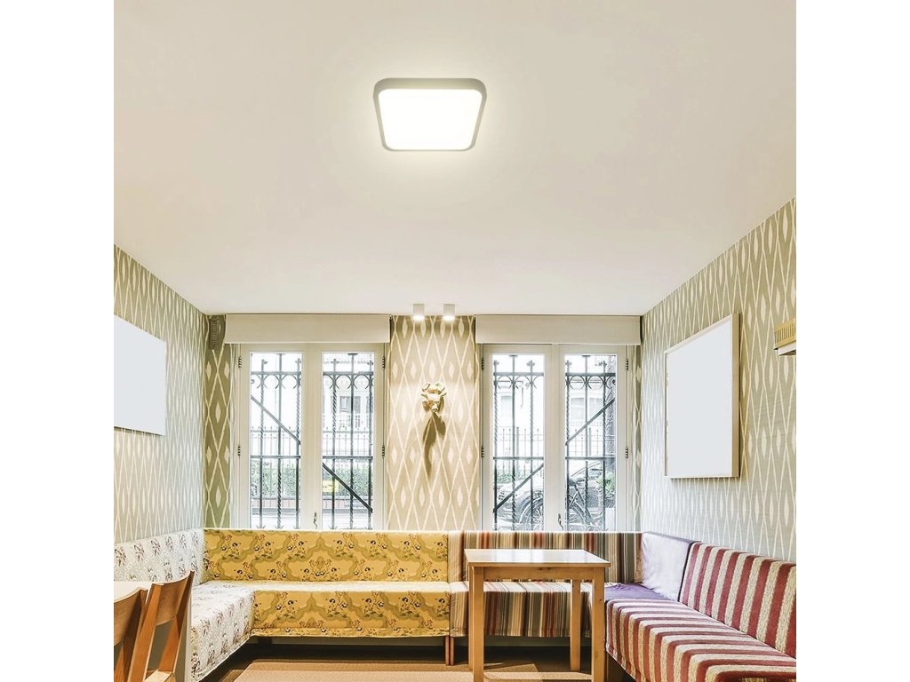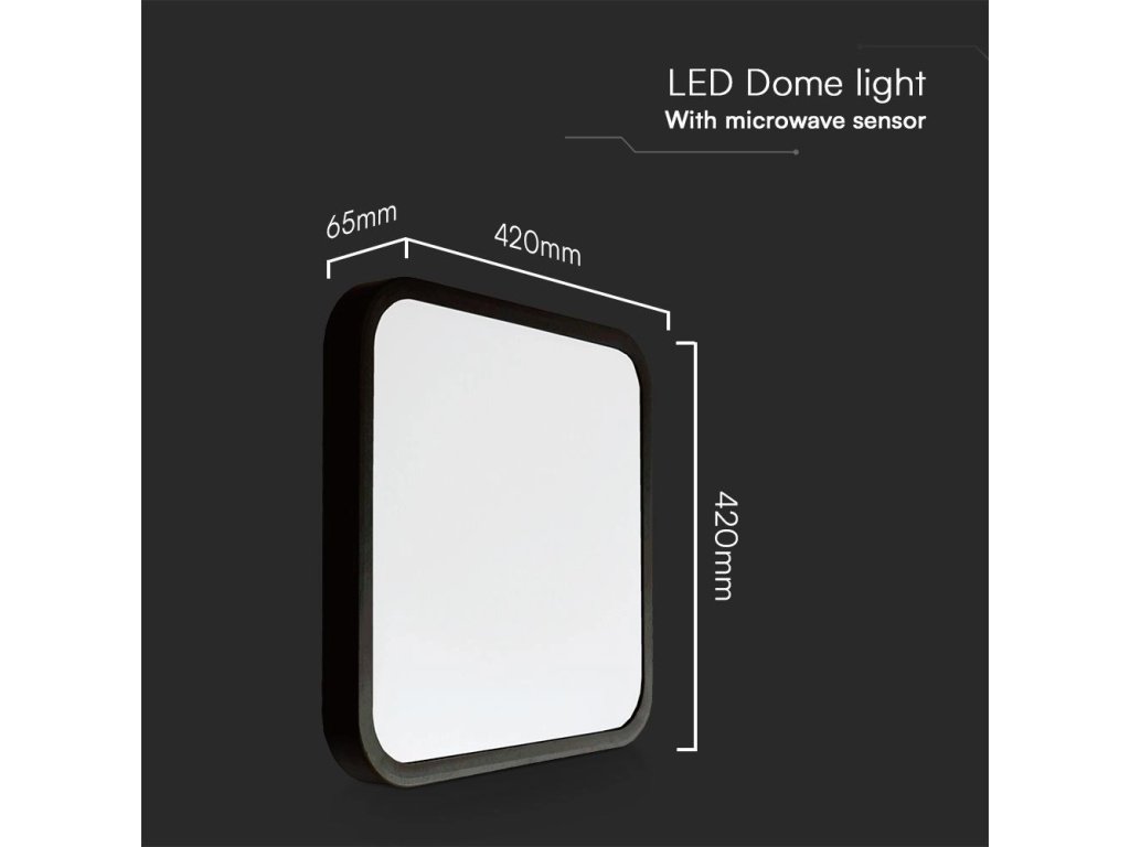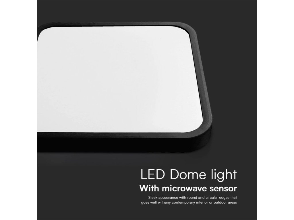 Lampă LED cu senzor de lumină și microunde 36W, 3820lm, IP44, 4000K, pătrată, ramă neagră