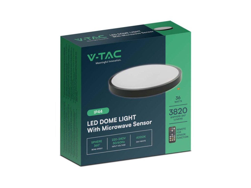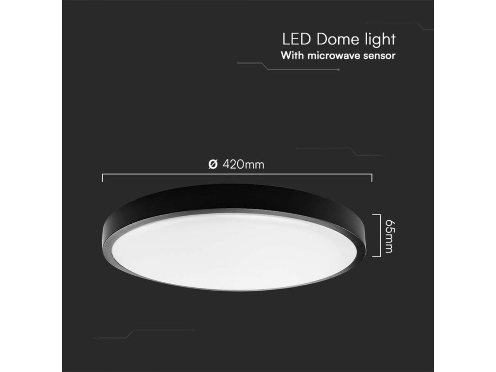 Lampa LED cu senzor de mișcare și senzor de lumină 36W, 3820lm, IP44, 4000K, rotundă, cadru negru