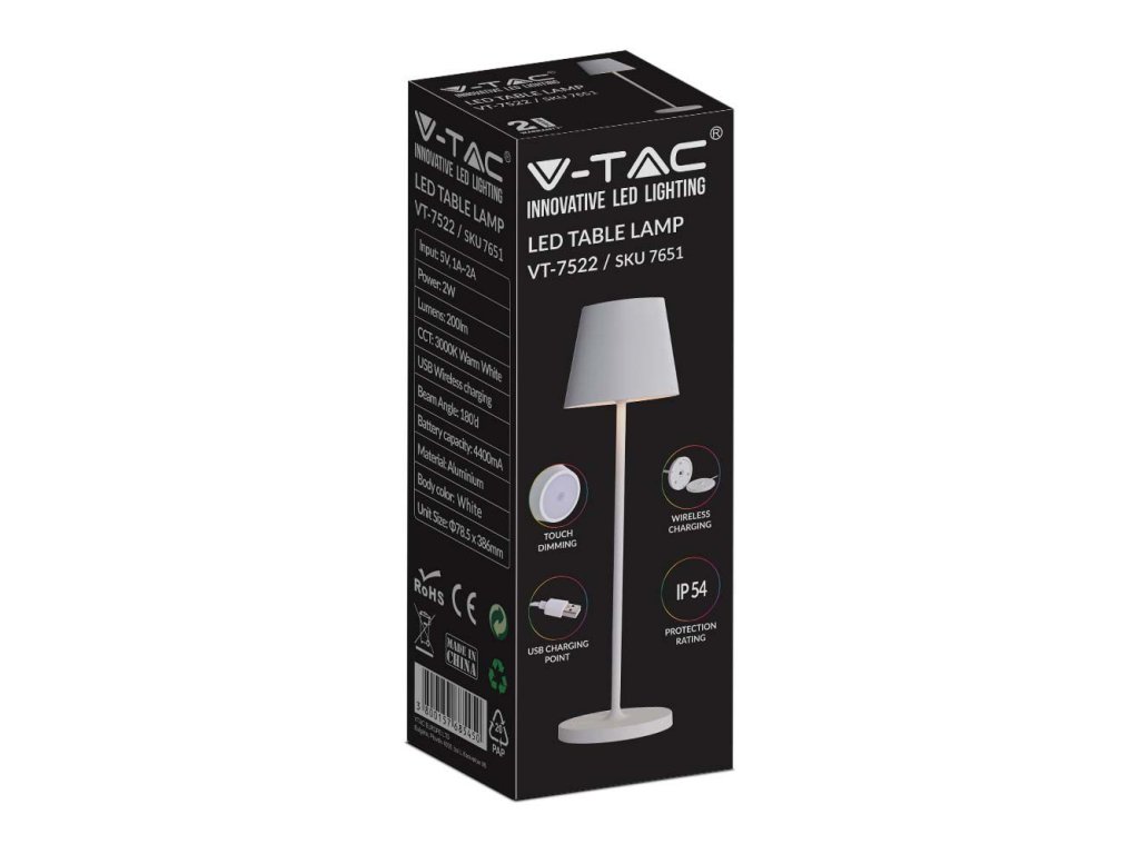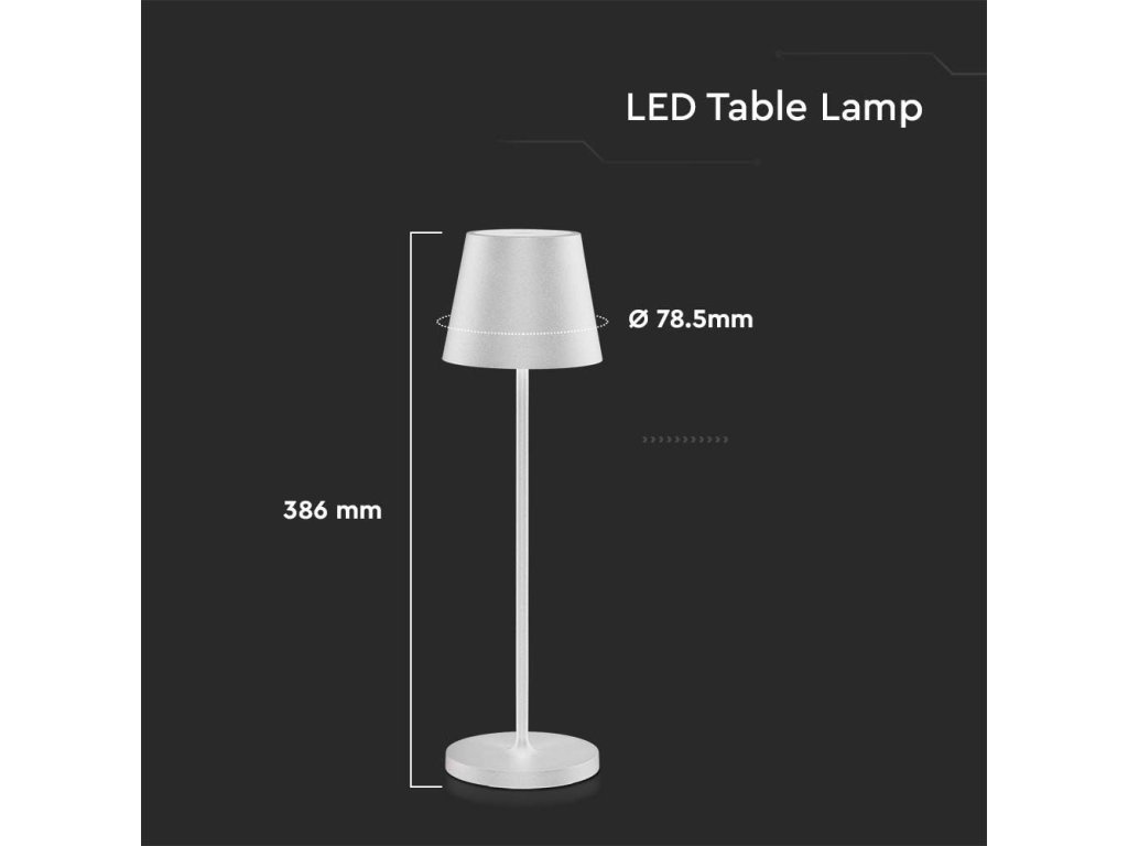 LAMPĂ LED DE MASĂ 2W, 200lm, 3000K, REÎNCĂRCĂBILĂ, 4400mAh cu încărcător. cu piedestal, ALB, IP54