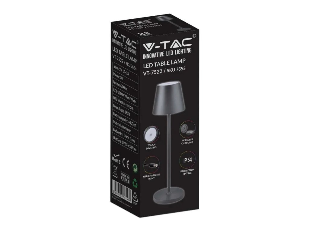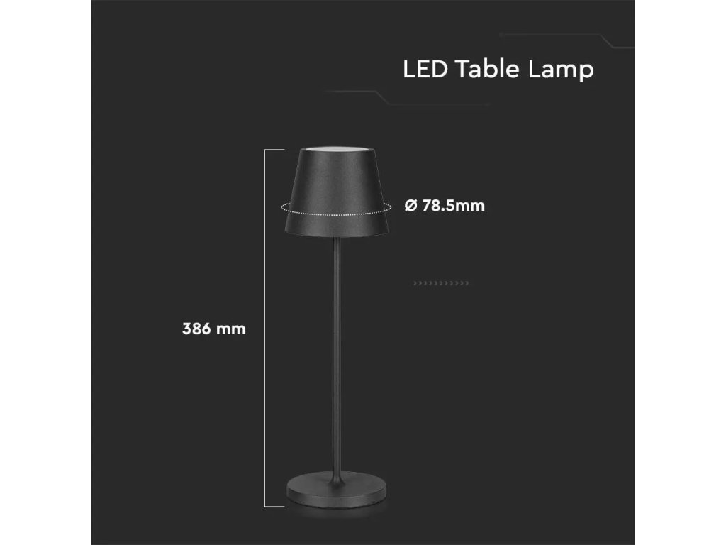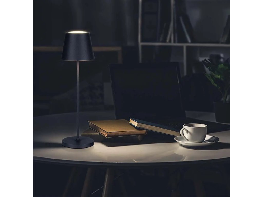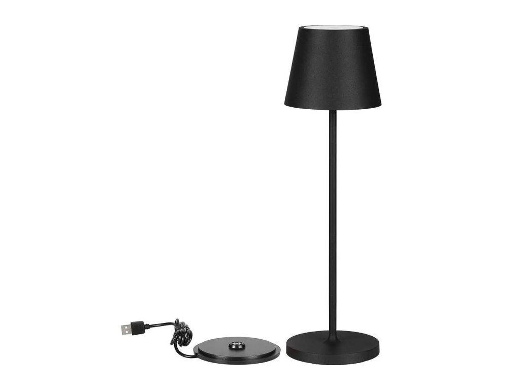 LAMPĂ LED DE MASĂ 2W, 200lm, 3000K, REÎNCĂRCĂBILĂ, 4400mAh cu încărcător. cu piedestal, NEGRU, IP54