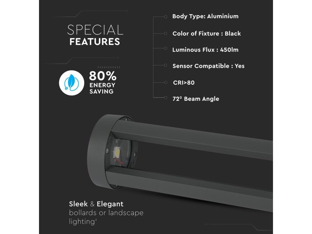 LAMPĂ LED Grădină 10W (450 LM), IP65, NEGRU
